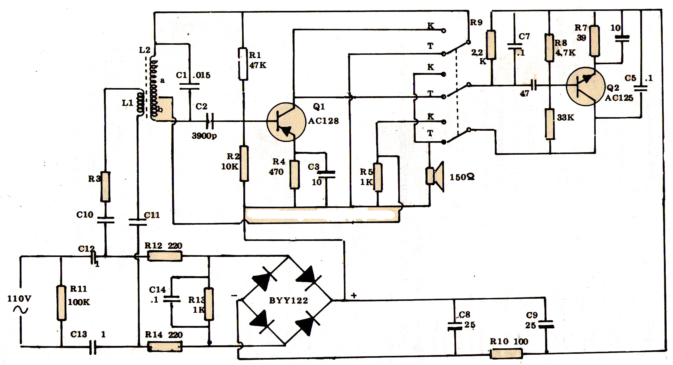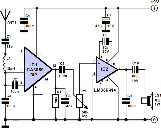 - Penguat penguat pada skema diatas umumnya menggunakan transistor,